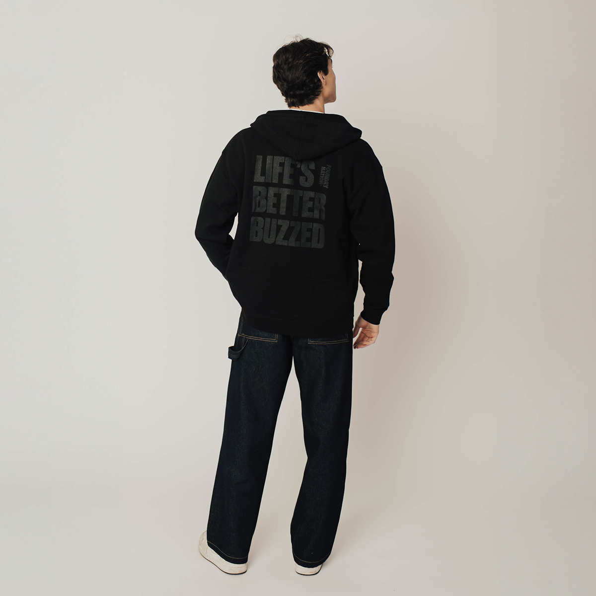 Life moves smoother with a little buzz. The Foundry Nation Life’s Better Buzzed Zip-Up is printed on a premium Independent hoodie made with soft, midweight fleece and a roomy, laid-back fit. Jersey-lined hood, heavy-gauge drawcords, metal eyelets, and ribbed cuffs/waist keep it feeling solid from airport gates to late-night escapes. A limited run—grab yours before it disappears.
